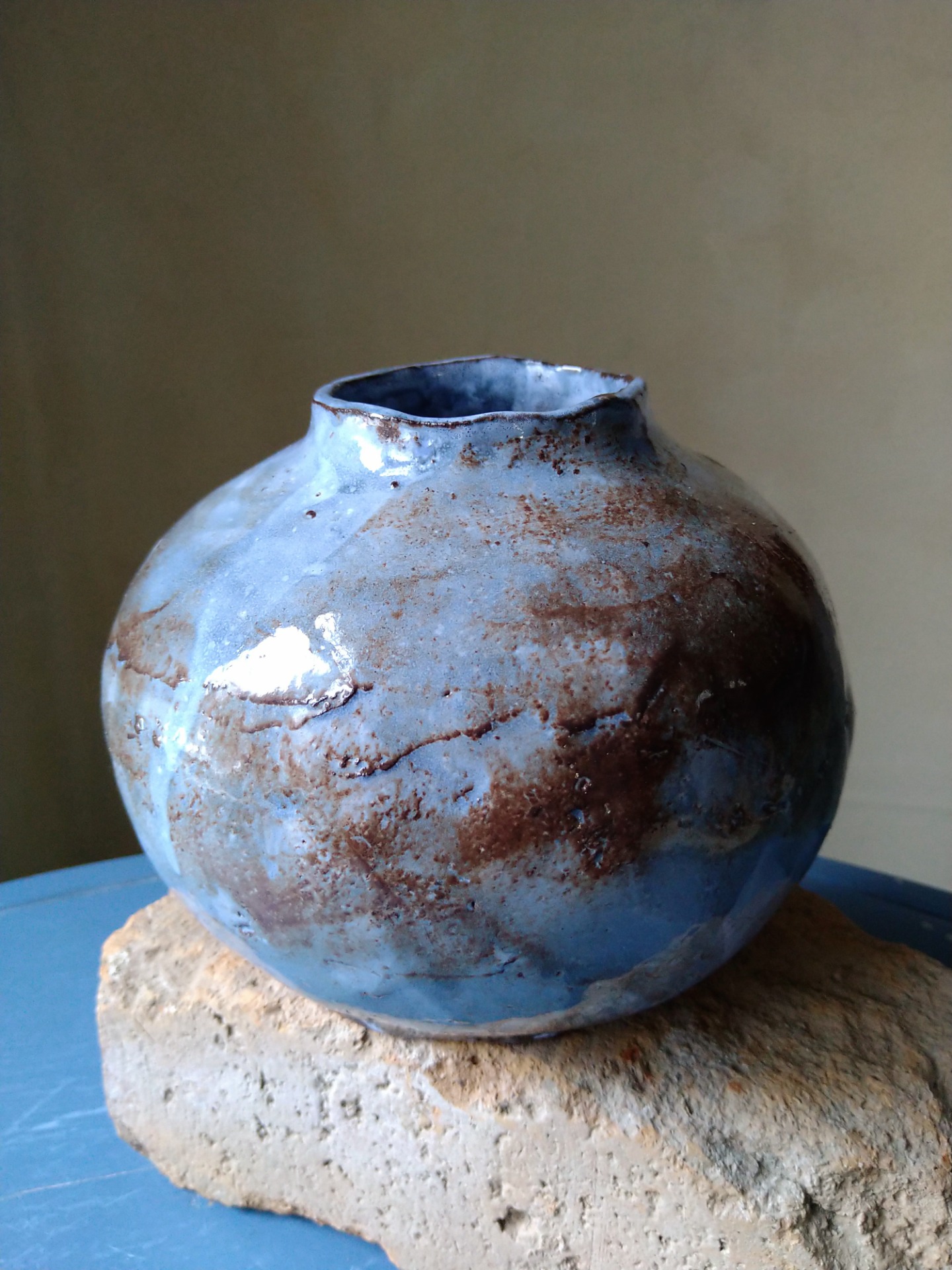 Sininen ja ruskea kiiltävä lasite.