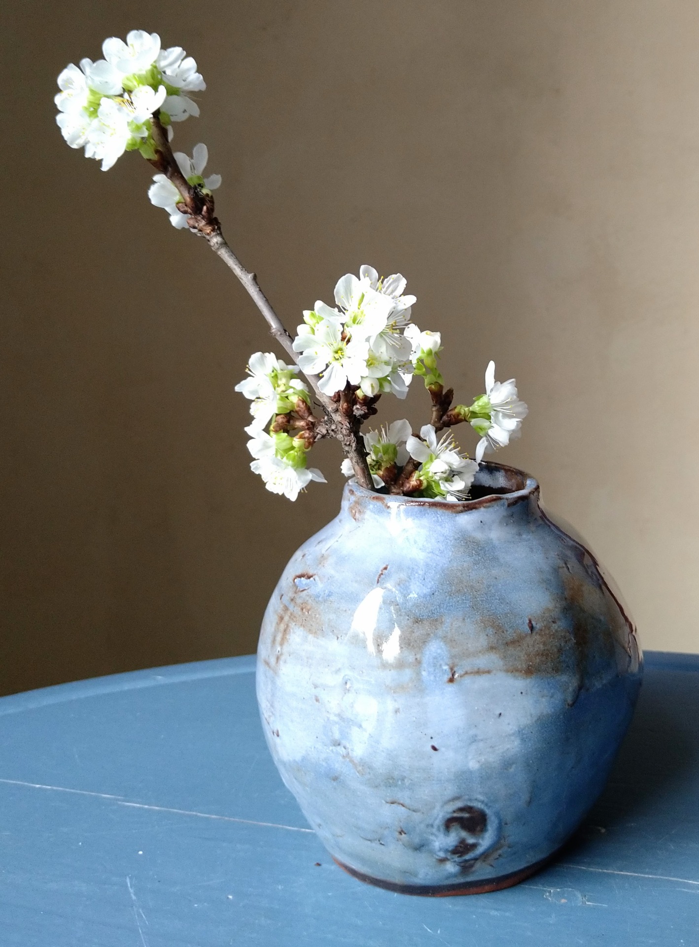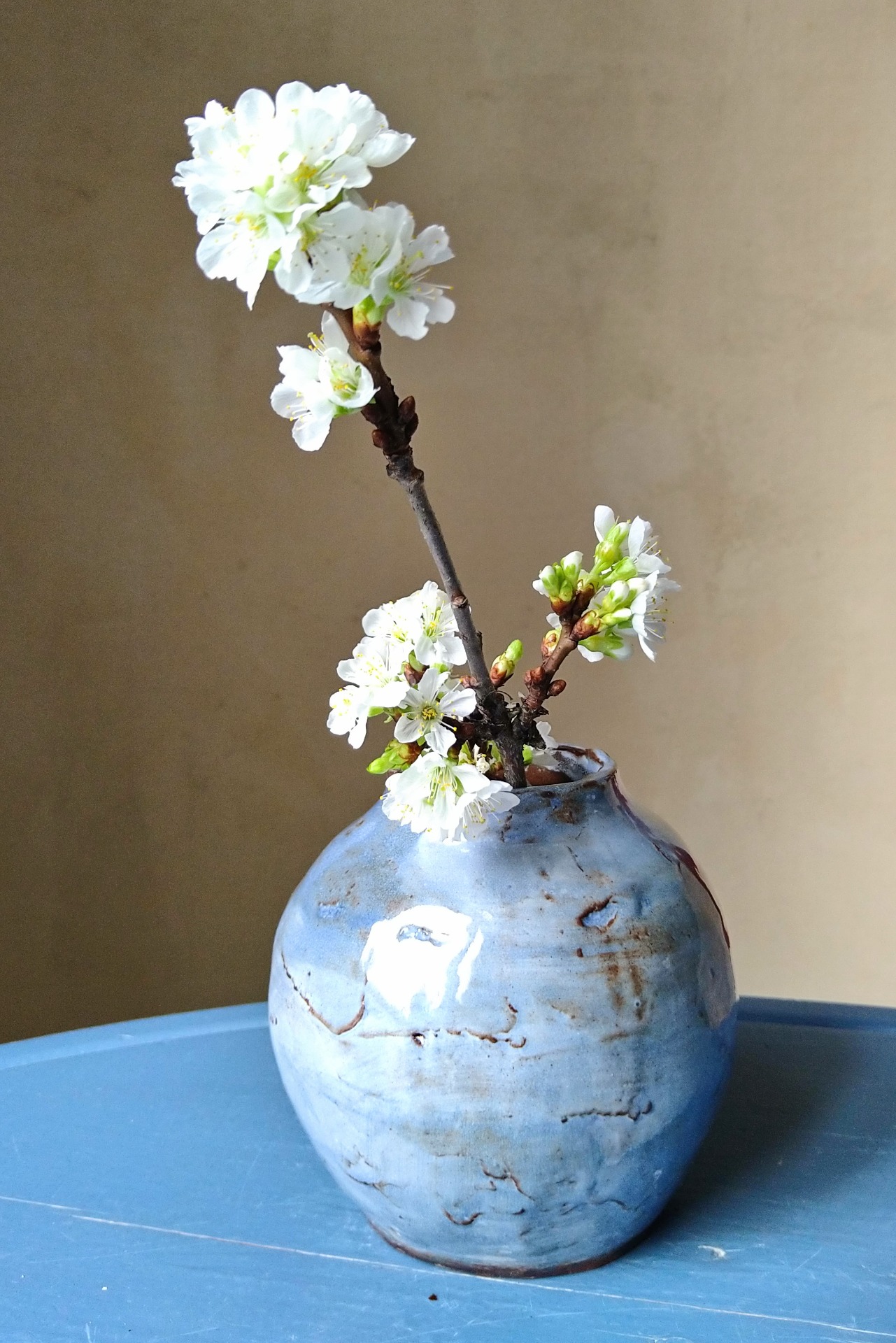 Kauniin sininen elävä pinta, ruskeilla vivahteilla.