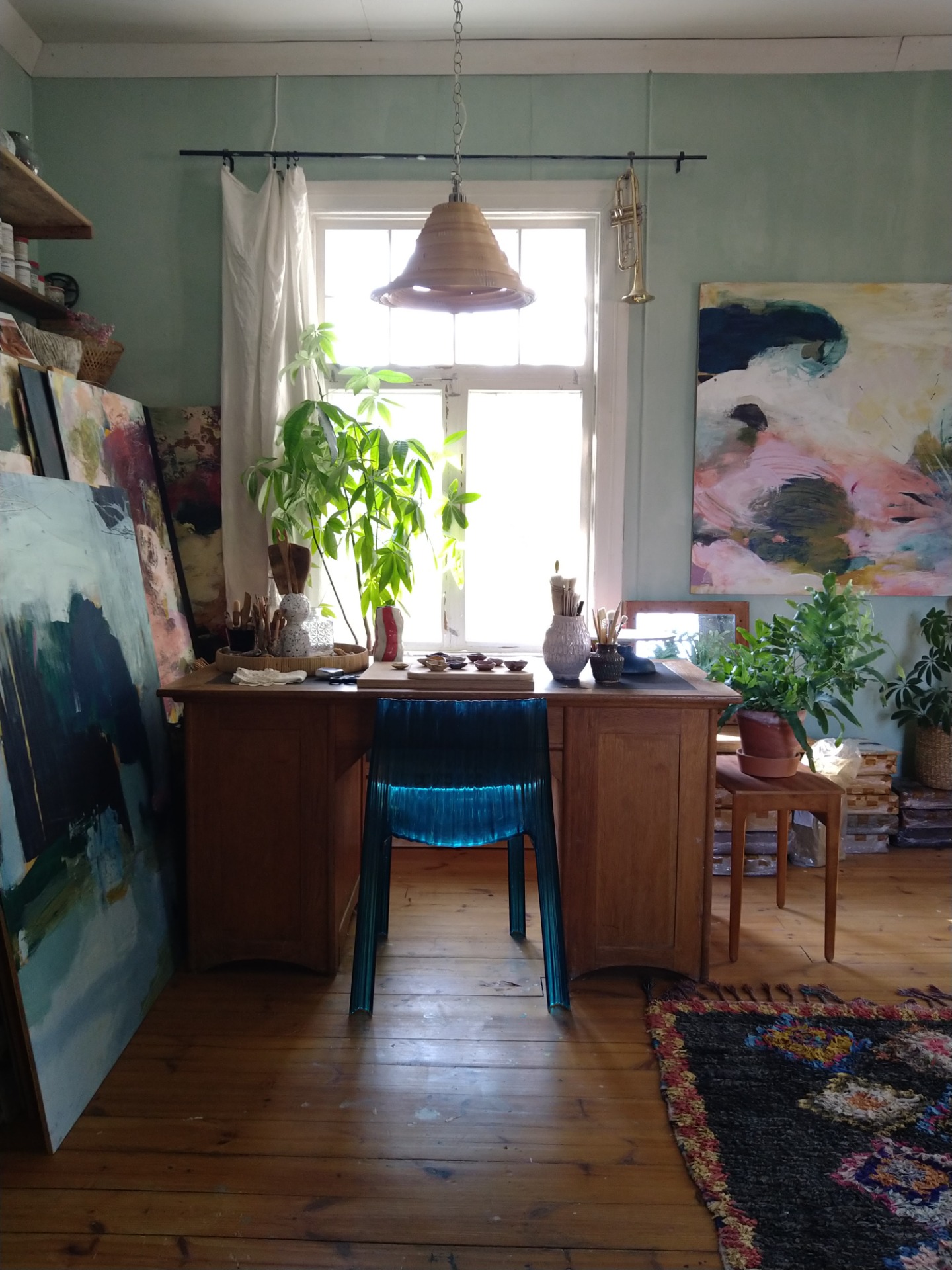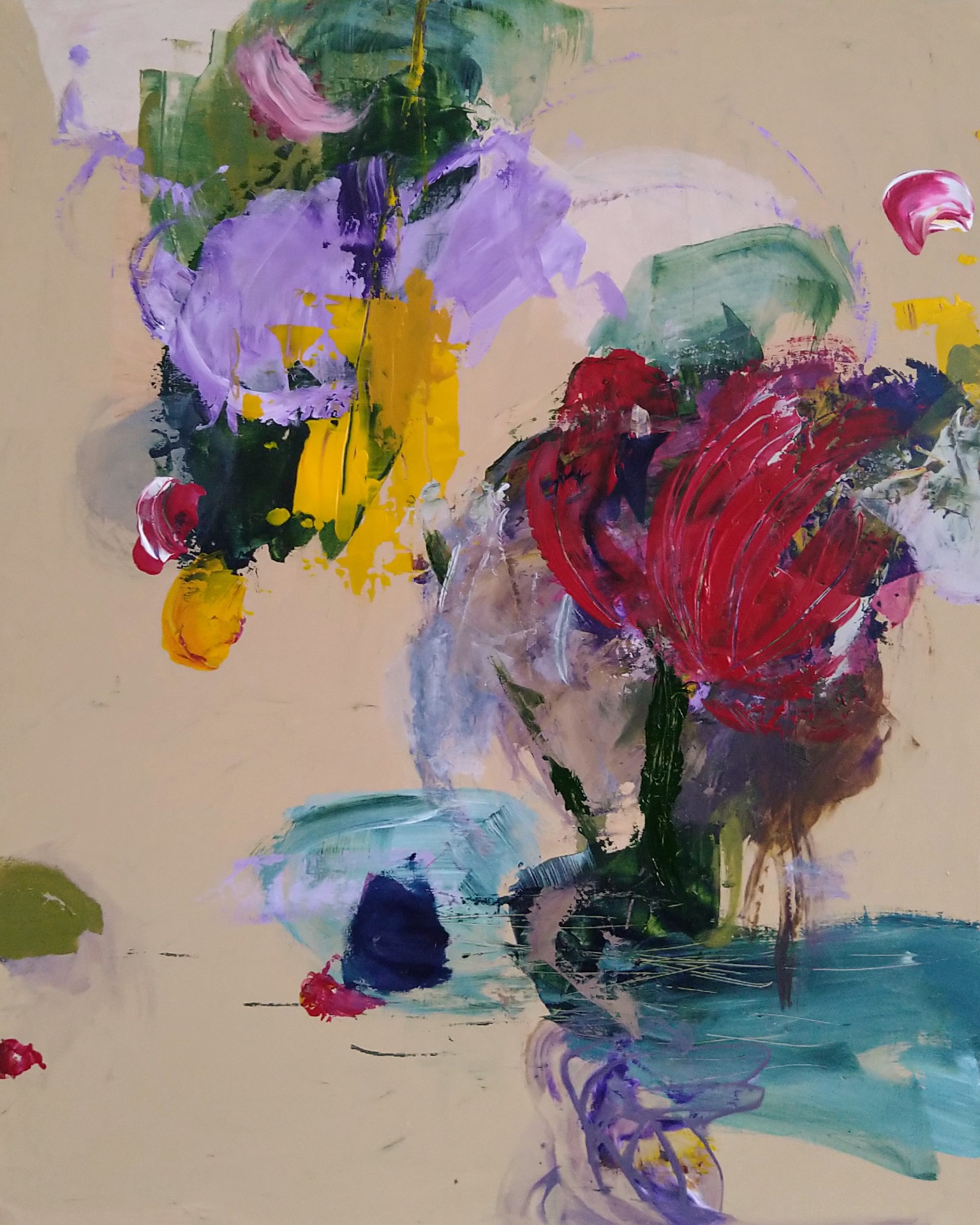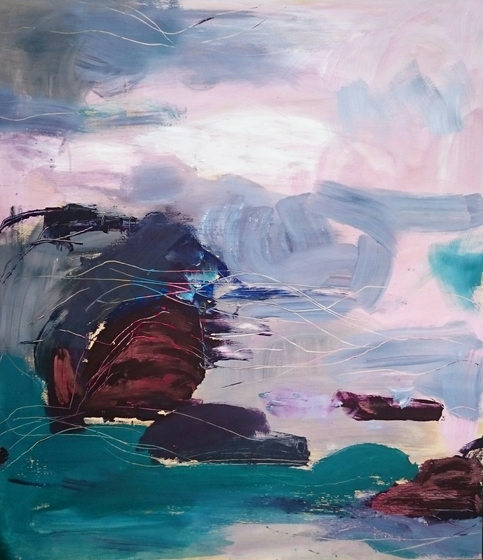 Maalaukseni tulevat yllätyksinä. Suhteeni väreihin ja maalaustekniikoihin on jopa lapsellisen innostunut ja avoin. En etsi sääntöjä enkä ohjeita. Etsin uusia tilanteita, keskusteluja ja kokoonpanoja. Ilahdun, kun saan asiat toimimaan tai ristiriidat ratkaistua. En myöskään etsi täyttä harmoniaa vaan sitä, että värit ja muodot voivat puhua keskenään toisiaan ymmärtäen ja toisilleen merkityksen antaen.